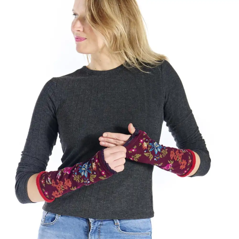 Τα γάντια Bloom είναι μπορντό, διακοσμημένα με πολύχρωμα λουλούδια και διαθέτουν rib τελείωμα από κόκκινο νήμα chenille, προσφέροντας απαλή υφή, άνεση και κομψότητα σε κάθε σας εμφάνιση.