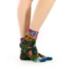 Οι γυναικείες κάλτσες με ρεβέρ Atlas από την εταιρία Dub & Drino είναι μαύρες με γεωμετρικά και πολύχρωμα φυτικά μοτίβα. Η μύτη είναι σκούρο μπλε, ενώ το rib τελείωμα στο εξωτερικό ρεβέρ διαθέτει ρίγες σε μαύρο, πράσινο, ροζ και κόκκινο, προσθέτοντας μια παιχνιδιάρικη και κομψή πινελιά στο στυλ σας.