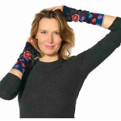 Προσθέστε μια λουλουδένια πινελιά γοητείας στο στυλ σας με τα γάντια χωρίς δάχτυλα  Fleurs d’Orange της Fil de Jour της εταιρίας Dub & Drino. Κατασκευασμένες στην Ιταλία από βαμβάκι το οποίο προσφέρει άνεση, ελαστικότητα και ανθεκτικότητα για καθημερινή χρήση. Τα πολύχρωμα και ντελικάτα λουλουδένια μοτίβα σε αποχρώσεις μπλε, κόκκινου, μωβ και πράσινου ξεχωρίζουν υπέροχα πάνω στο navy μπλε φόντο, δημιουργώντας ένα μαγευτικό οπτικό αποτέλεσμα. Οι μιτίνες χωρίς δάχτυλα κρατούν τα χέρια σας ζεστά, ενώ σας χαρίζουν απόλυτη ελευθερία κινήσεων και κομψότητα κάθε στιγμή.