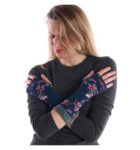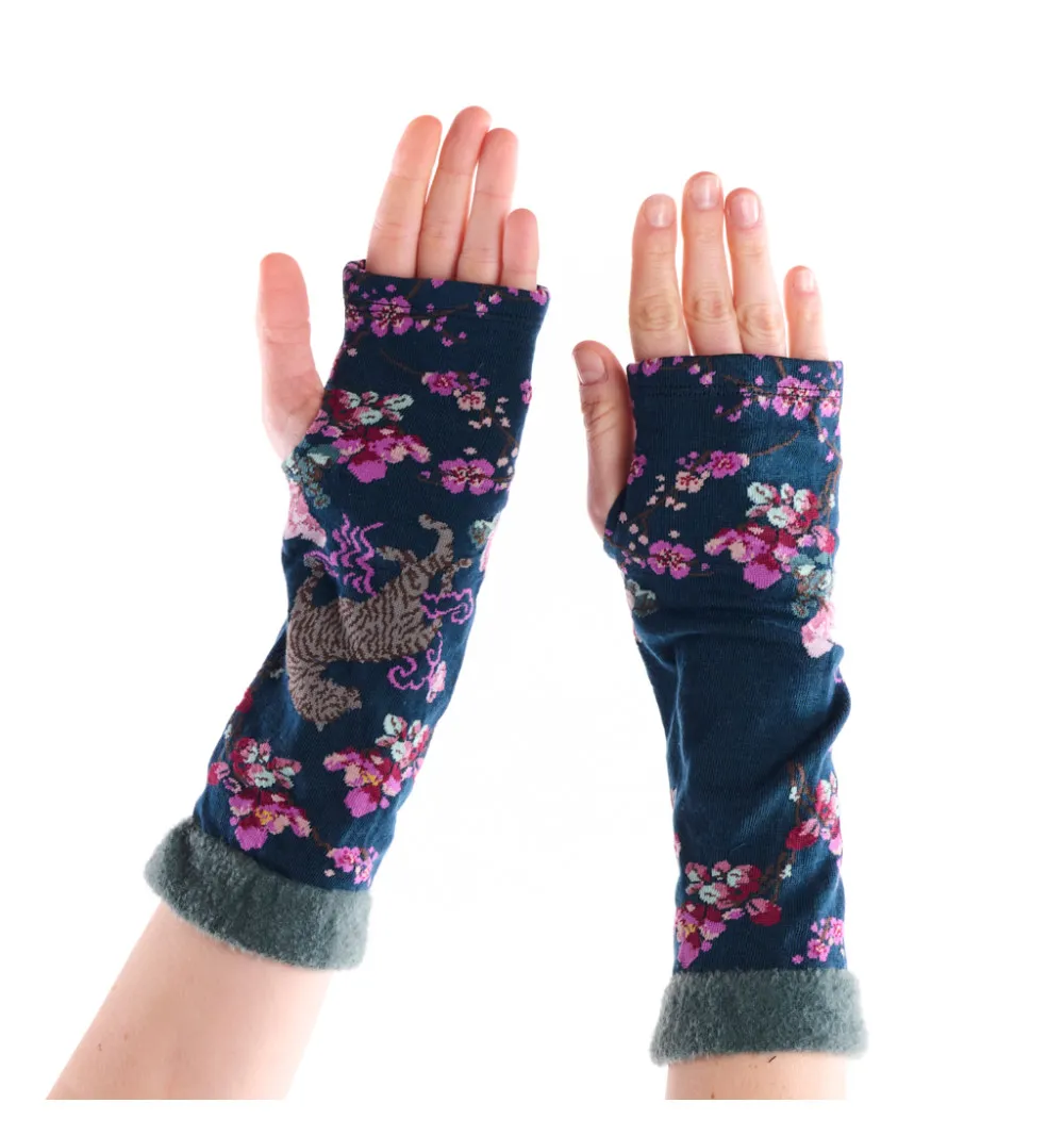 Οι μιτίνες Prunus Serrulata της Fil de Jour είναι σε navy blue χρώμα, διακοσμημένες με μικρά ροζ λουλούδια και μοτίβο jaguar, δημιουργώντας έναν μοναδικό και καλλιτεχνικό συνδυασμό. Το φαρδύ rib τελείωμα από απαλό νήμα chenille σε πράσινο του νερού προσφέρει εξαιρετική άνεση και κομψό φινίρισμα. Ιδανική επιλογή για να προσθέσετε χαρακτήρα και στυλ στις καθημερινές σας εμφανίσεις.
