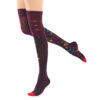 Οι κάλτσες Coquelicots της Fil de Joie συνδυάζουν κομψότητα και διακριτική θηλυκότητα. Πάνω σε μαύρο φόντο αναπτύσσονται λεπτεπίλεπτα κόκκινα παπαρούνες και φύλλα φασκόμηλου, δημιουργώντας ένα εκλεπτυσμένο floral αποτέλεσμα.