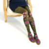 Ζωηρή ψηλή κάλτσα με εντυπωσιακά λουλουδάτα σχέδια σε αποχρώσεις μπλε, κόκκινου, κίτρινου και πράσινου πάνω σε μαύρο και κόκκινο φόντο από την εταιρία Dub & Drino. Κατασκευασμένη στην Ιταλία από μαλακό βαμβάκι, προσφέρει άνεση, ελαστικότητα και τέλεια εφαρμογή. Ιδανική για να δώσετε χρώμα και φαντασία σε κάθε εμφάνιση.