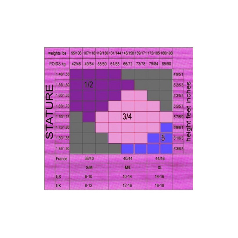 1/2: S/M, 3/4: L/XL
