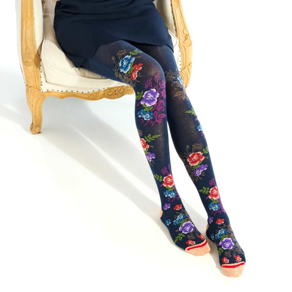 Ο συνδυασμός με πολυαμίδιο, βισκόζη, πολυεστέρα και ελαστάνη εξασφαλίζει ελαστικότητα και ανθεκτικότητα, ενώ τα ζωηρά floral μοτίβα σε αποχρώσεις μπλε, κόκκινο, μωβ και πράσινο σε φόντο μπλε navy δίνουν μία νότα φαντασίας και κομψότητας στα φθινοπωρινά και χειμωνιάτικα σύνολά σας.