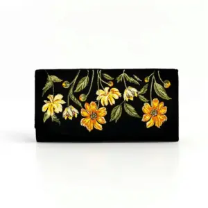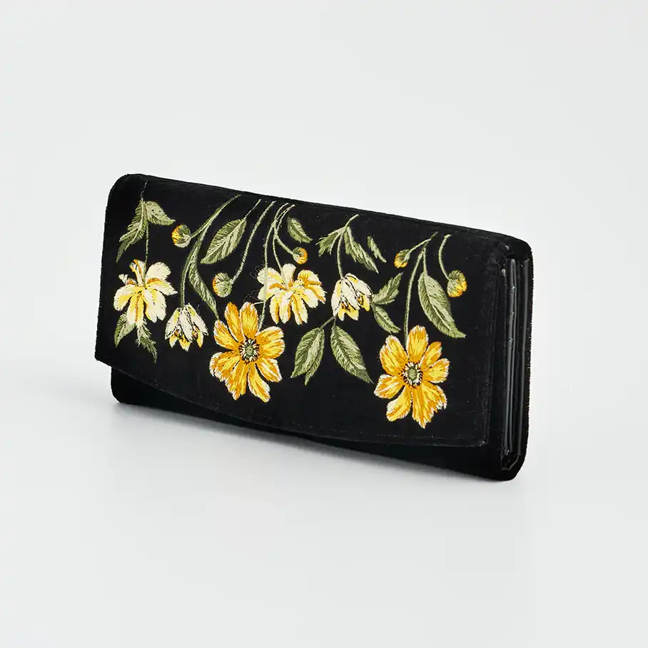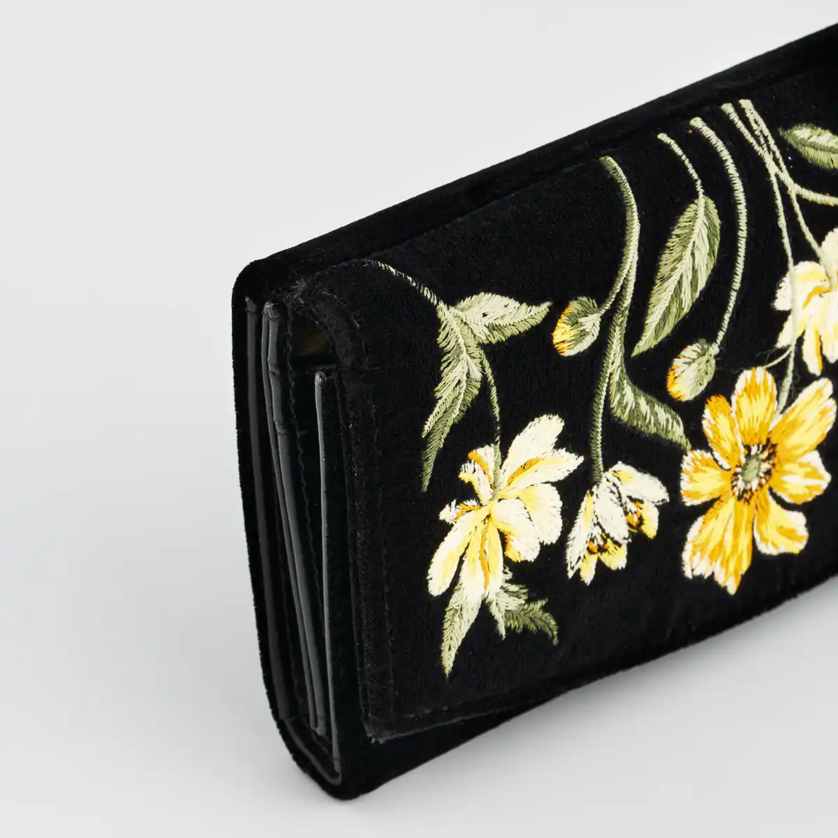 Κομψό και εκλεπτυσμένο, το Black Botanical Embroidered Purse προσθέτει μια πολυτελή πινελιά στην καθημερινή σας εμφάνιση. Κατασκευασμένο από απαλό βελούδο και διακοσμημένο με λεπτεπίλεπτο κέντημα, συνδυάζει αρμονικά τη φινέτσα με την πρακτικότητα. Το εσωτερικό του διαθέτει θήκη για χαρτονομίσματα, πέντε θέσεις για κάρτες και εσωτερική θήκη με φερμουάρ, ώστε να διατηρείτε τα απαραίτητα οργανωμένα και ασφαλή.