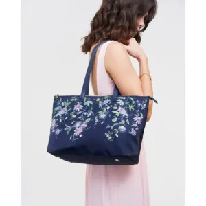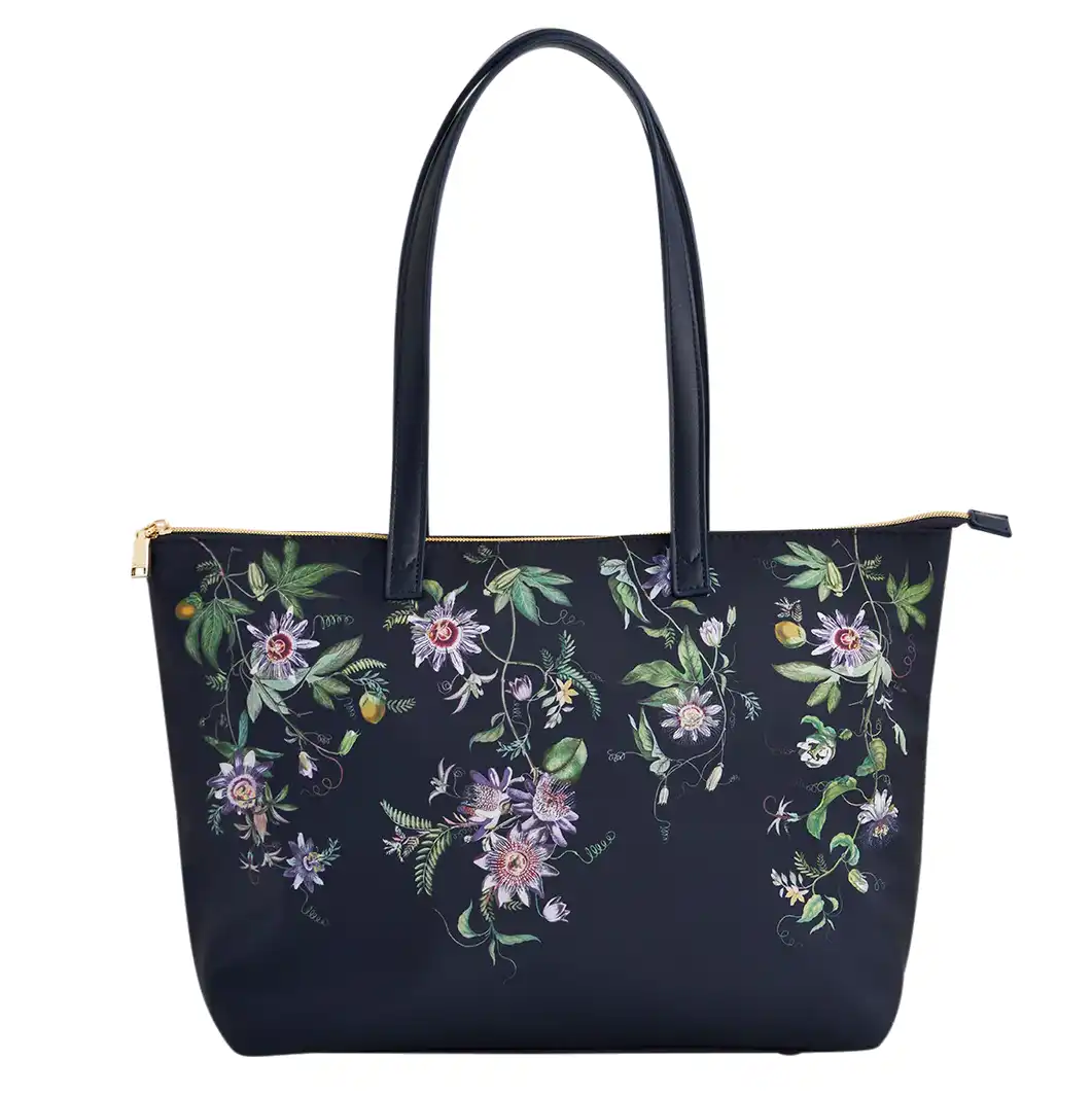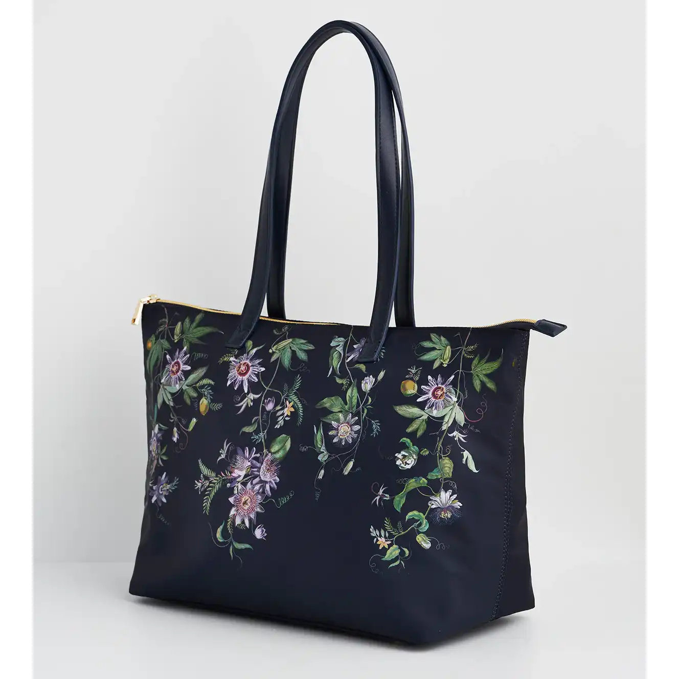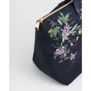 Η Navy Passion Flower Grab Tote, μια μποέμ τσάντα διακοσμημένη με τα χαρακτηριστικά κεντημένα άνθη της Fable. Λουλούδια σε βαθιές αποχρώσεις του μωβ και του πλούσιου πράσινου χαρίζουν μοναδική γοητεία σε αυτό το πρακτικό καθημερινό αξεσουάρ. Με άνετο λουρί ώμου και ευρύχωρο εσωτερικό, είναι σχεδιασμένη για χαλαρές αποδράσεις — είτε περπατάτε στην πόλη είτε αφήνετε πίσω σας τη φασαρία της.