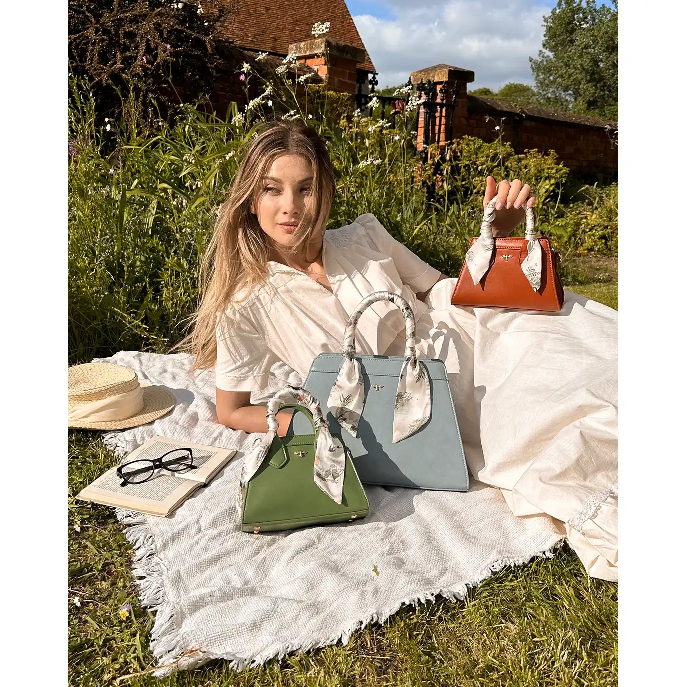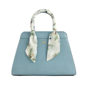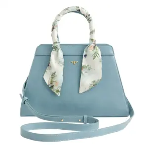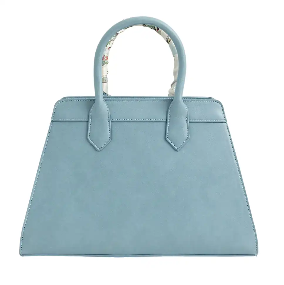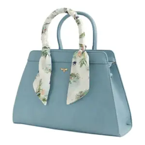Αυτή η κλασική tote, κατασκευασμένη από εναλλακτικό δέρμα σε απαλό powder blue, διαθέτει εσωτερική επένδυση με nature-inspired print τύπου Toile de Jouy. Με πρακτικές θήκες και άφθονο χώρο, είναι ιδανική για να χωρέσει όλα τα απαραίτητα της καθημερινότητας. Ολοκληρώνεται με μεταλλικά στοιχεία σε χρυσή απόχρωση και αποσπώμενο μεταξένιο φουλάρι Whispering Willows, τυλιγμένο κομψά γύρω από τη χειρολαβή για επιπλέον στυλ.