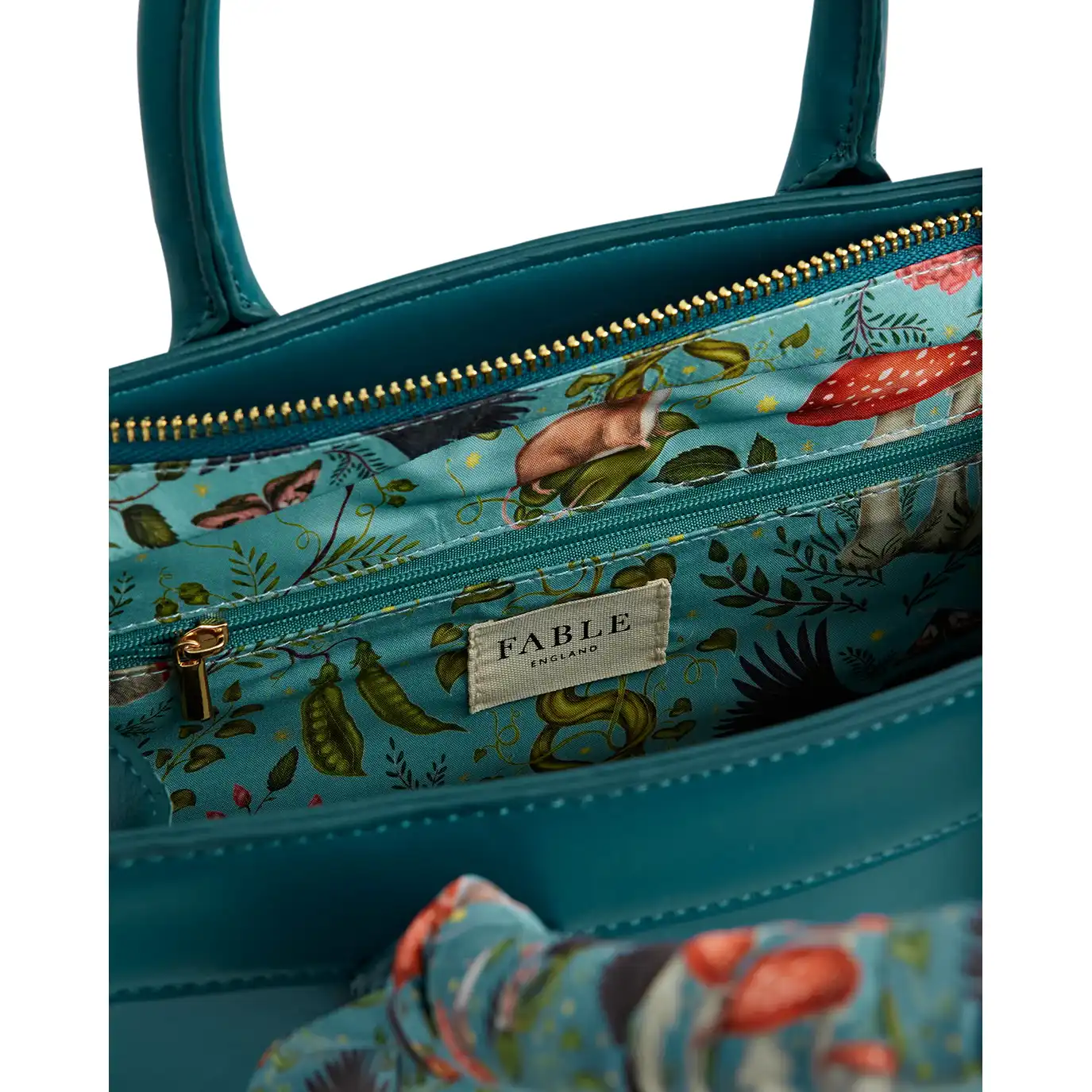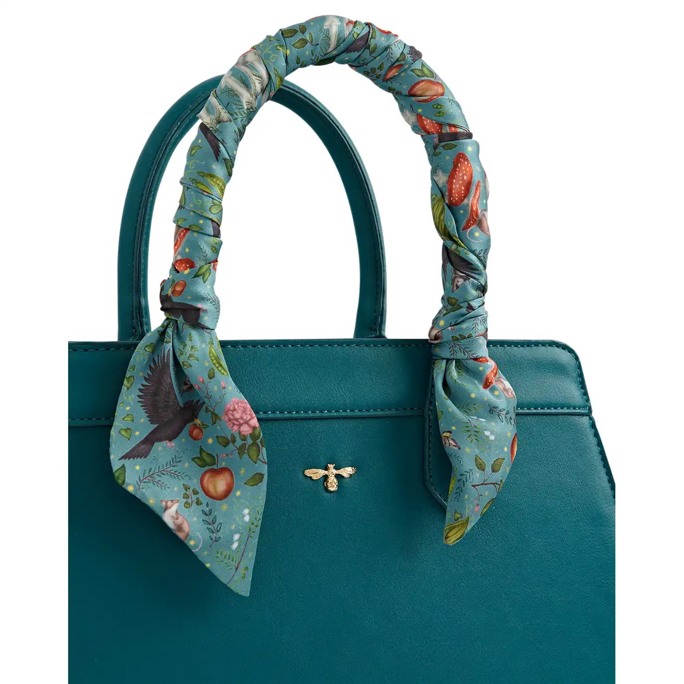 Χαρούμενες καλοκαιρινές διαθέσεις ενέπνευσαν τις limited edition Structured Totes, αποτέλεσμα της αγαπημένης καλλιτεχνικής συνεργασίας Into The Woods με την Catherine Rowe. Στην απόχρωση Mermaid Teal, αυτή η tote κάνει τις ηλιόλουστες ημέρες ακόμα πιο φωτεινές. Διακοσμημένη με μεταξένιο φουλάρι με αφηγηματικό print, δεμένο στη χειρολαβή σε αρμονικές αποχρώσεις. Για ένα πιο παιχνιδιάρικο mix & match αποτέλεσμα, μπορείτε να αντικαταστήσετε το φουλάρι με δικά σας αγαπημένα.