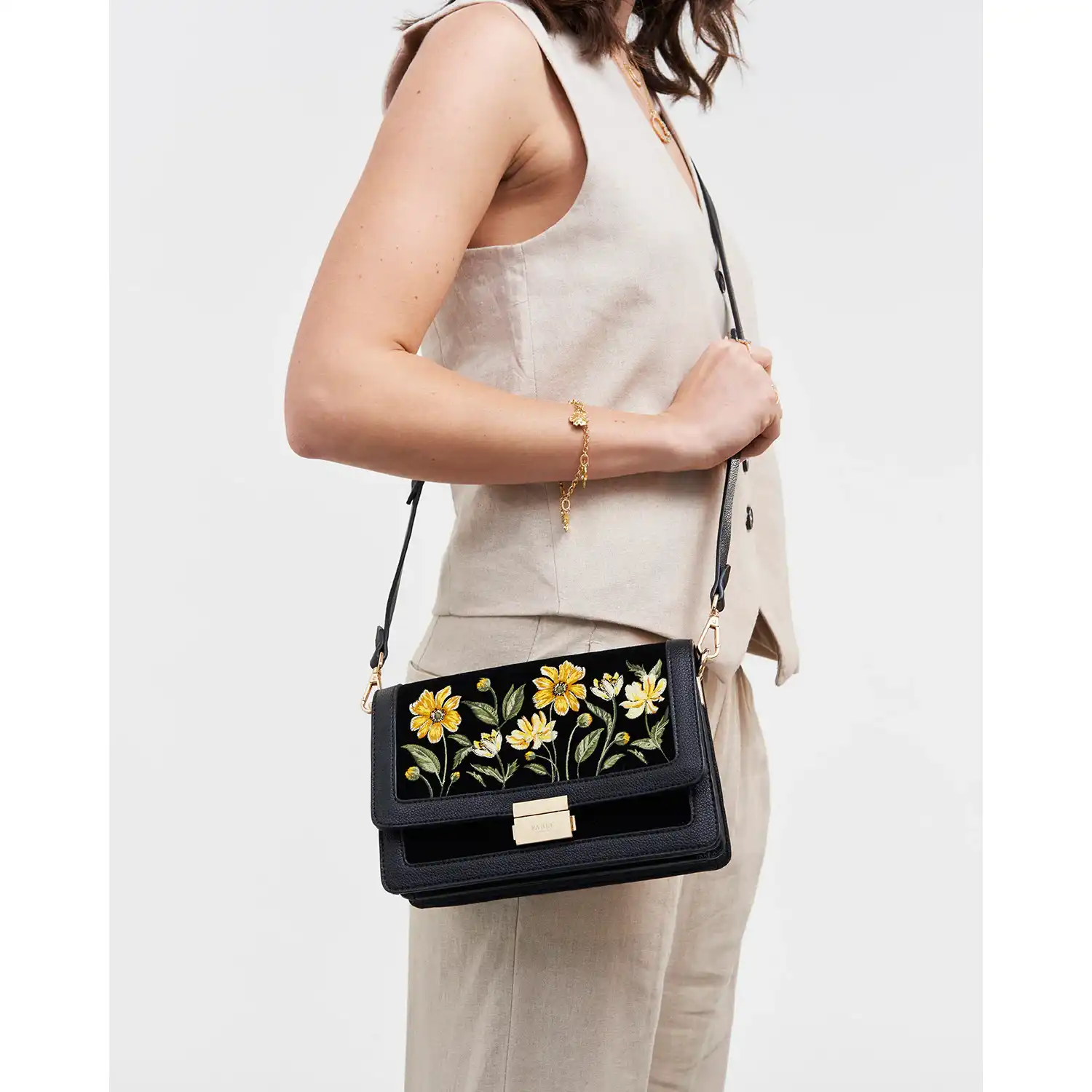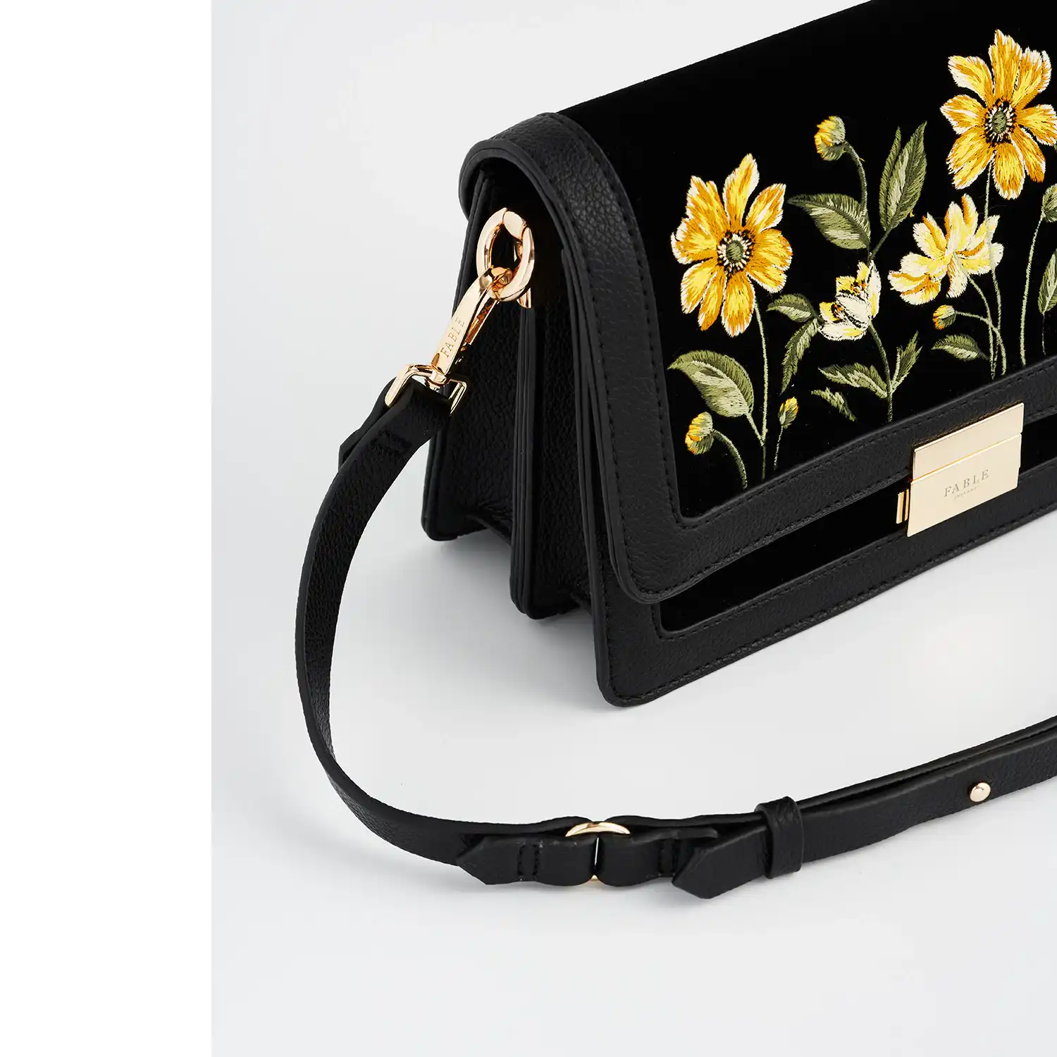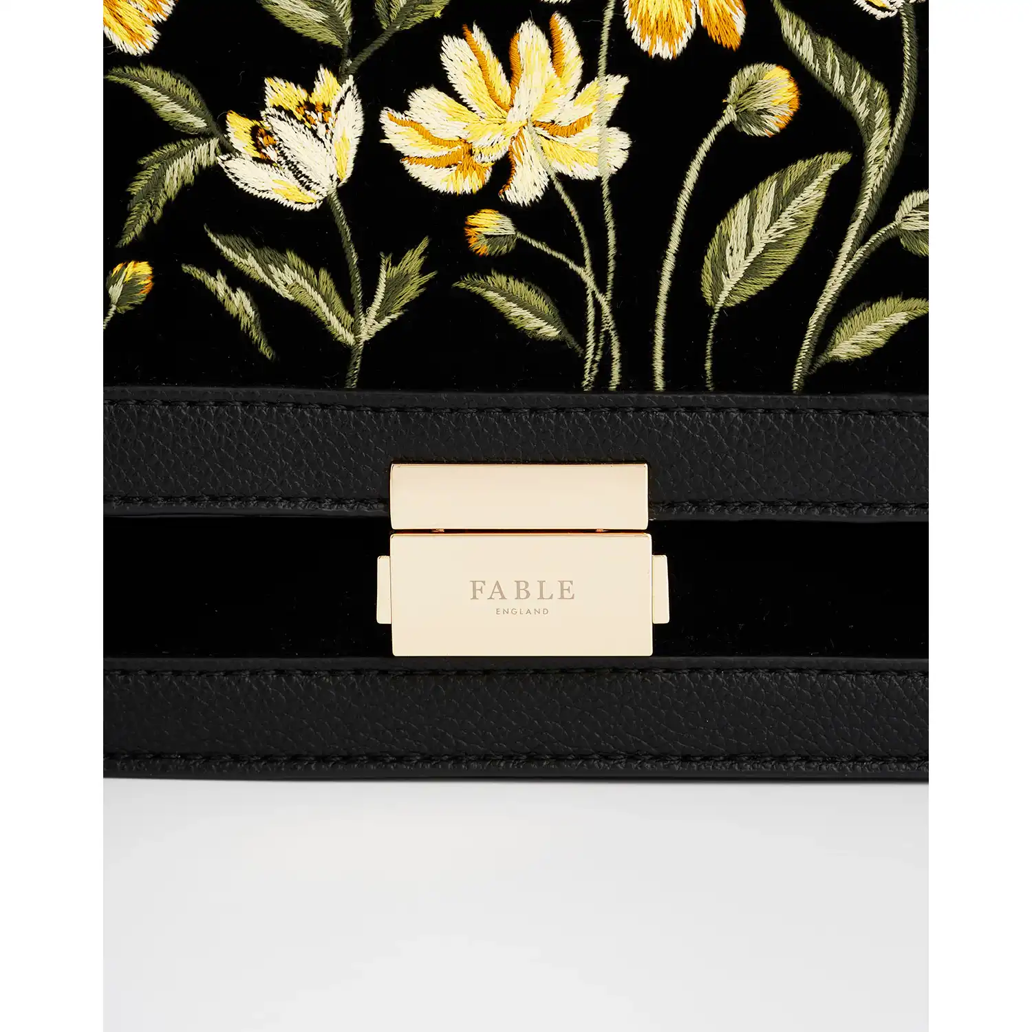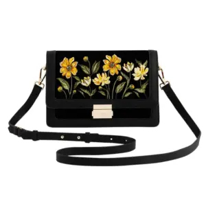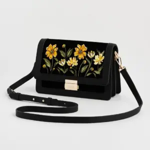Η Black Botanical Velvet Embroidered Foldover Bag αποπνέει τη γοητεία ενός παραμυθένιου κήπου, όπου χρυσά άνθη λάμπουν απαλά πάνω σε βαθύ μαύρο βελούδο. Το αποσπώμενο λουρί ώμου επιτρέπει να τη φορέσετε από το πρωί έως το βράδυ, καθιστώντας την ένα ευέλικτο και εκλεπτυσμένο αξεσουάρ για κάθε περίσταση.