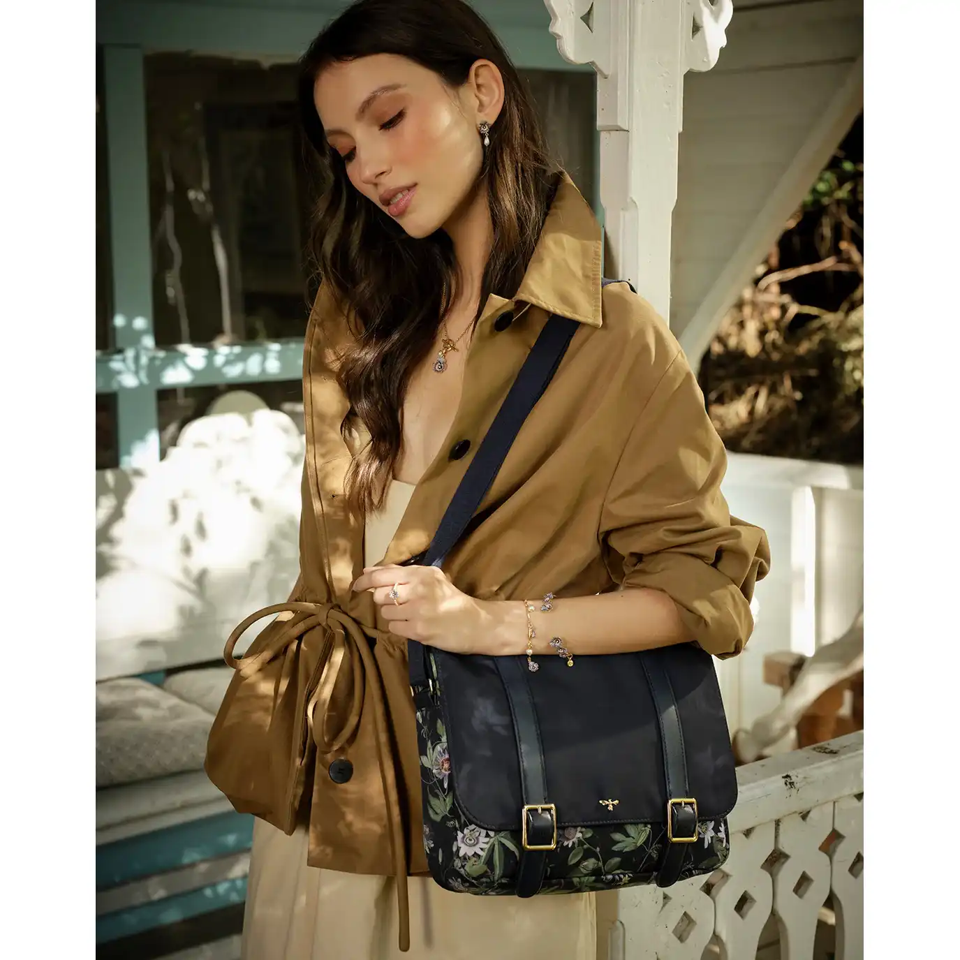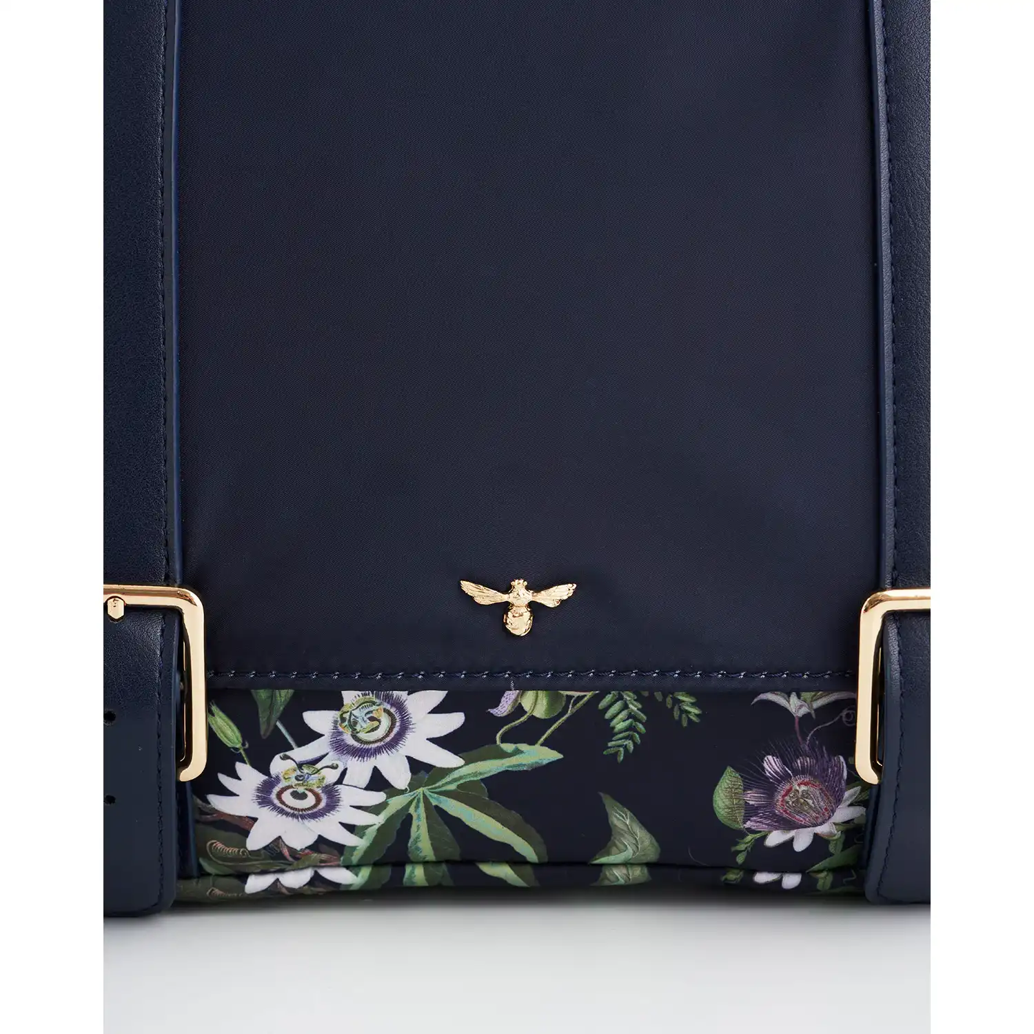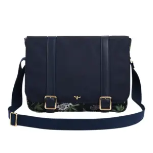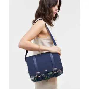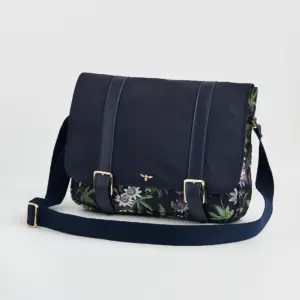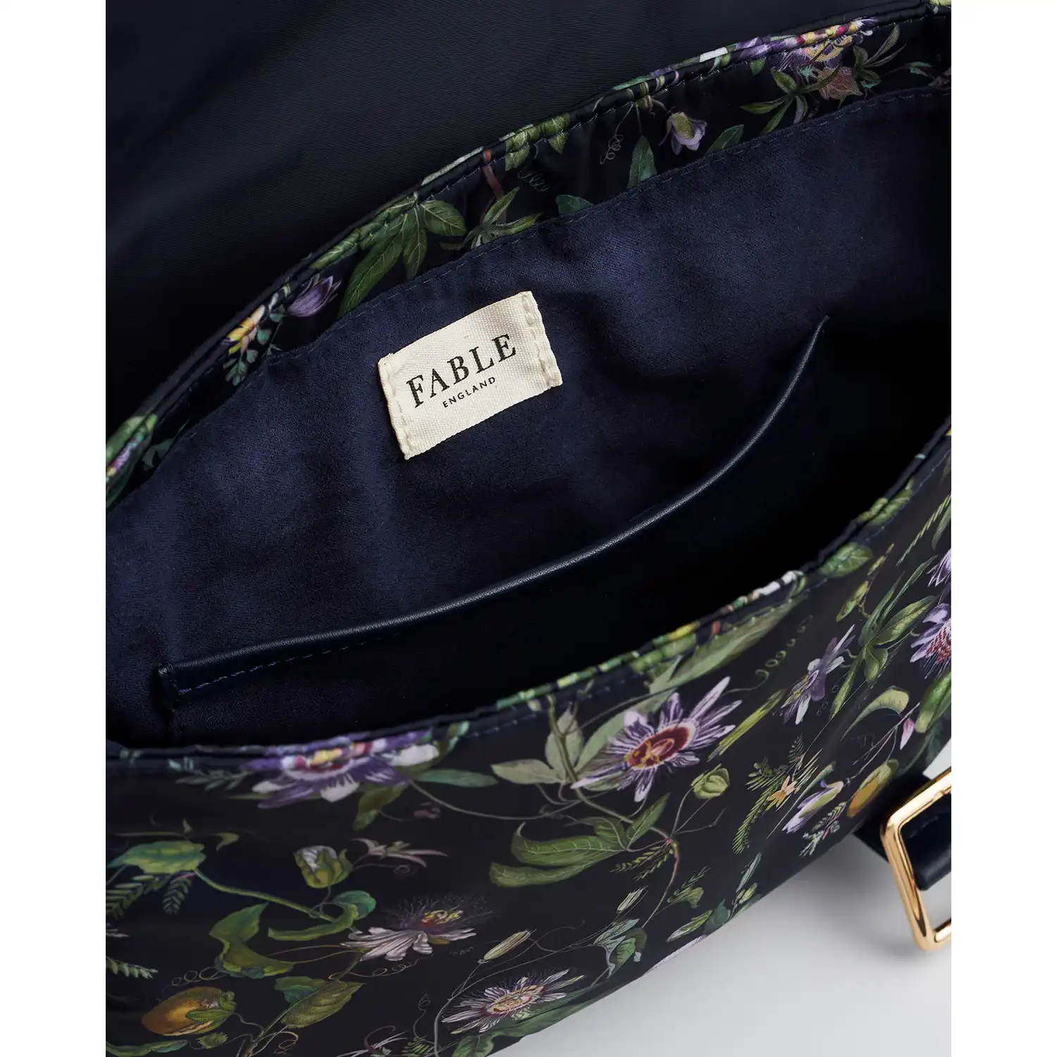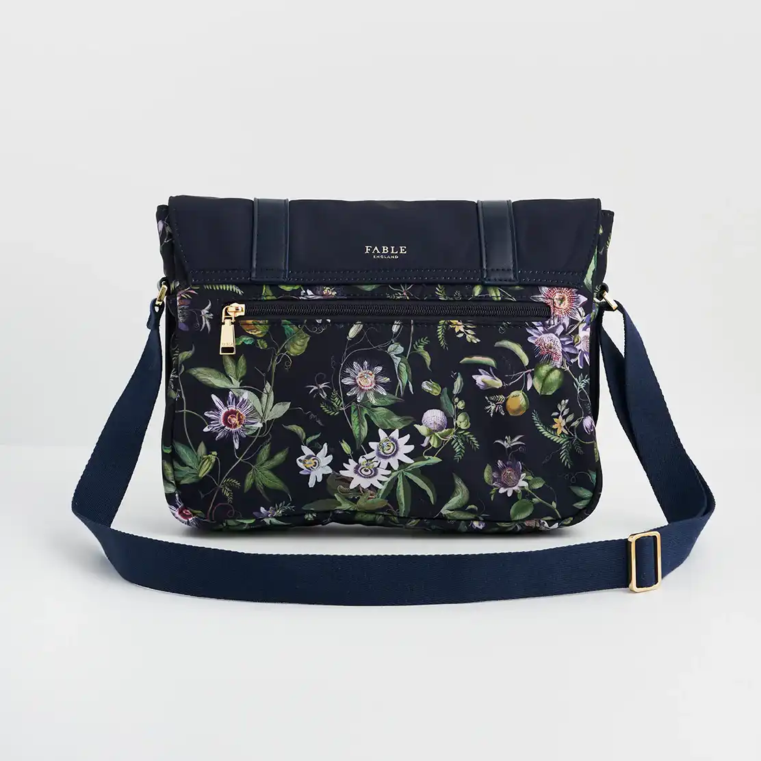 Η τσάντα Navy Passion Flower Satchel διακοσμημένη κομψά με τα χαρακτηριστικά λουλούδια της Fable, συνδυάζει ρομαντισμό και καθημερινή άνεση. Με ρυθμιζόμενο λουρί ώμου, προσφέρει άνετη εφαρμογή σε κάθε σας περιπλάνηση – από τις πρωινές βόλτες στην αγορά έως τις βραδινές βόλτες κάτω από το φως του φεγγαριού.