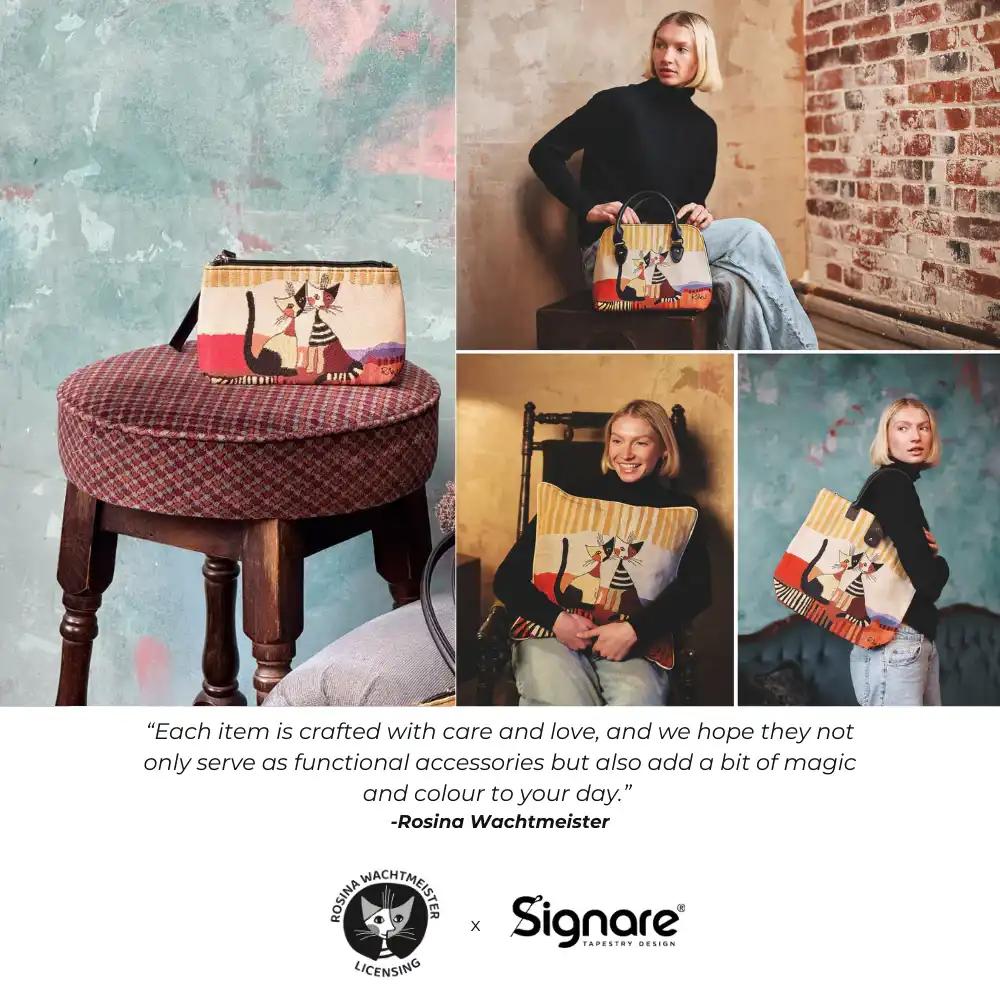 Εμπνευσμένο από τη μοναδική αισθητική της Rosina Wachtmeister, το μοτίβο της γάτας Cappia, αποτελεί ιδανικό συνδυασμό κομψότητας και λειτουργικότητας. Το υφαντό ύφασμα αναδεικνύει τις έντονες αποχρώσεις και τις παιχνιδιάρικες λεπτομέρειες των διάσημων γατών της Wachtmeister, προσφέροντας μια αίσθηση ζωντανής τέχνης. Το απόλυτο statement piece για όσους αγαπούν τη γατίσια κομψότητα και την καλλιτεχνική έκφραση.